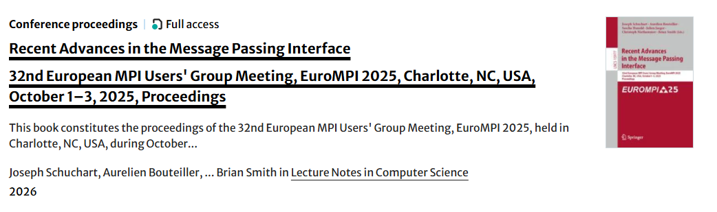 The proceedings for EuroMPI/USA 2025 are now available from Springer.